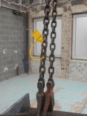 Bij ruwbouw-, hoogbouw- en renovatiewerken worden diverse bouwmaterialen op verdiepingen naar binnen gebracht door middel van een pallethaak die met een ketting opgehangen wordt aan de haak van een kraan. Soms wordt gewerkt met een inhaalplatform dat buiten het geveloppervlak uitsteekt, maar vaak wordt de last binnengetrokken door werknemers die aan de gevelopeningen staan en blootgesteld worden aan valgevaar als de last gaat slingeren en de hijskabels tegen de gevel schuren. Ongevallen bij de toepassing van deze werkmethode zijn meestal zeer ernstig en hebben soms een dodelijke afloop.