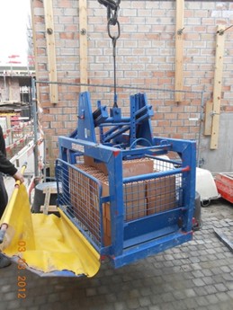 Snelbouw- en gevelstenen leveren op palletten: dagelijkse kost voor elke aannemer en bouwhandelaar. Hoger gestapelde palletten zijn efficiënt bij het transport, maar zorgen voor moeilijkheden op de bouwplaats. De oplossing is nochtans eenvoudig. Onder andere omdat er strikte regels gelden voor de ladingzekering tijdens het transport, is het vaak niet kosteneffectief om palletten bij het transport op elkaar te stapelen. Om toch zo veel mogelijk bouwmaterialen tegelijk te vervoeren gebruiken fabrikanten van snelbouw- en gevelstenen tegenwoordig meestal palletten waarop de stenen hoger gestapeld worden. Voor het transport is dit ideaal: zo wordt het maximale laadvermogen van de vrachtwagen of de oplegger benut zonder dat er antislipmatten of andere bijkomende middelen nodig zijn om te verhinderen dat de lading gaat schuiven. Op de bouwplaats veroorzaken deze hoge palletten echter bijkomende risico’s. De meeste palletvorken en andere hijstoebehoren voor kranen zijn niet hoog genoeg om een hoge pallet aan te pikken. Bovendien is een hoge, volledig geladen pallet meestal te zwaar om zonder meer op een steiger geplaatst te worden en moet de pallet dus eerst gedeeltelijk met de hand afgeladen worden voordat hij aangepikt kan worden met de palletvork van de kraan. Dat betekent niet alleen tijdverlies, maar ook gevaar van vallende stenen bij het hijsen.