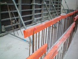 Een eenvoudige collectieve beschermingsmaatregel bestaat erin om de wachtstaven af te schermen met herbruikbare pvc afschermgoten van 1 meter lang. Deze zelfklemmende afschermgoten kunnen gebruikt worden voor wachtstaven van 6 mm tot 40 mm dik.